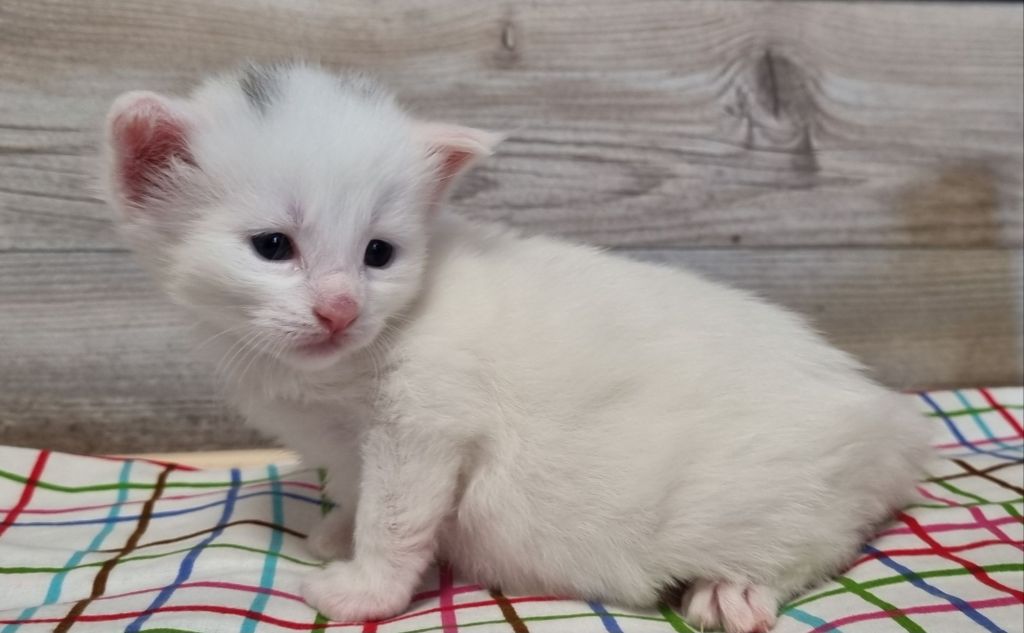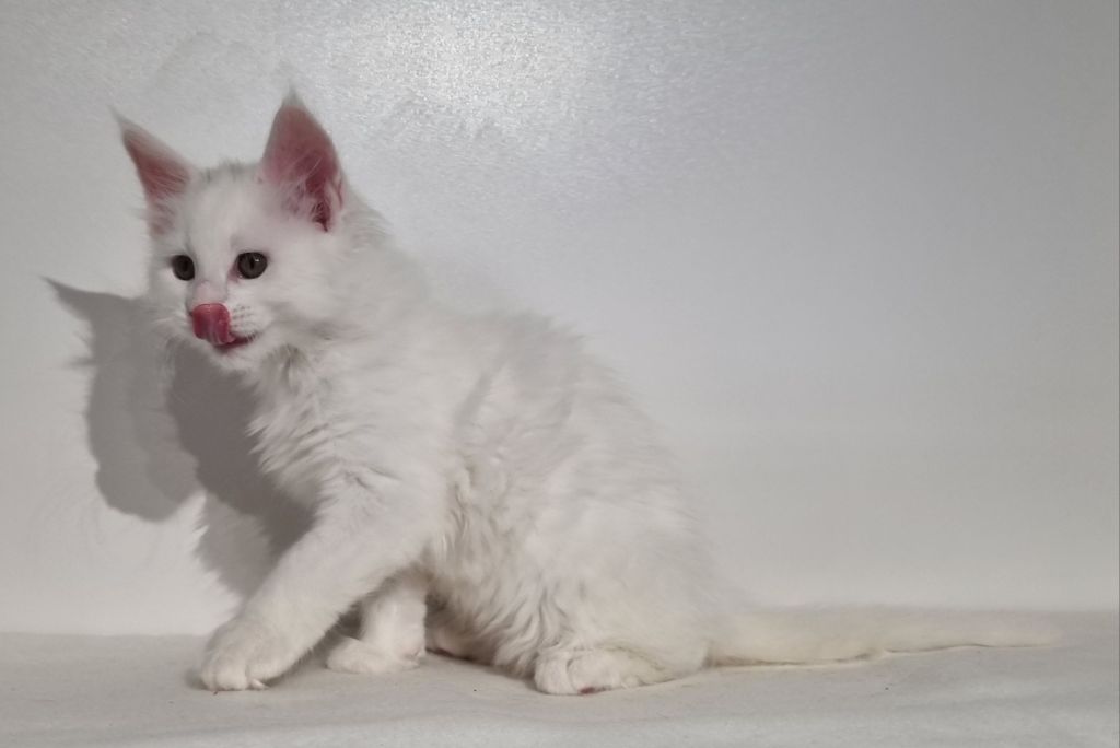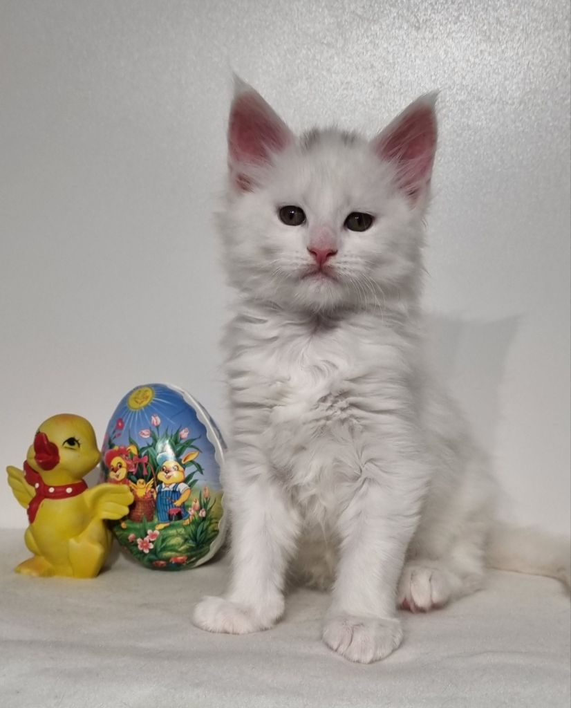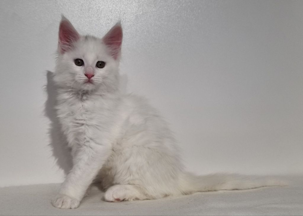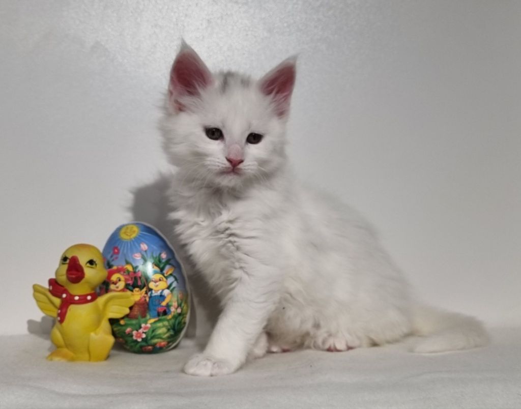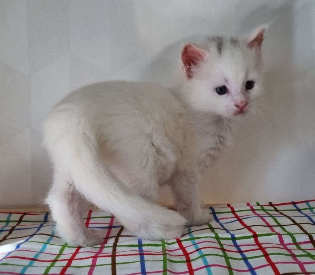 Vit med ”hörselfläckar” på huvudet, w62. Hane.