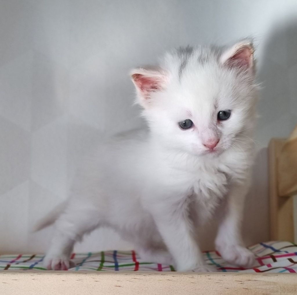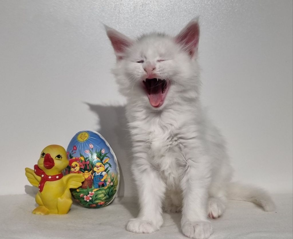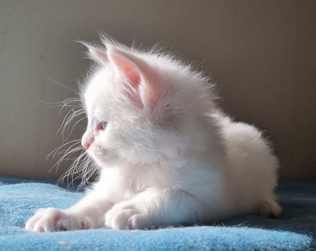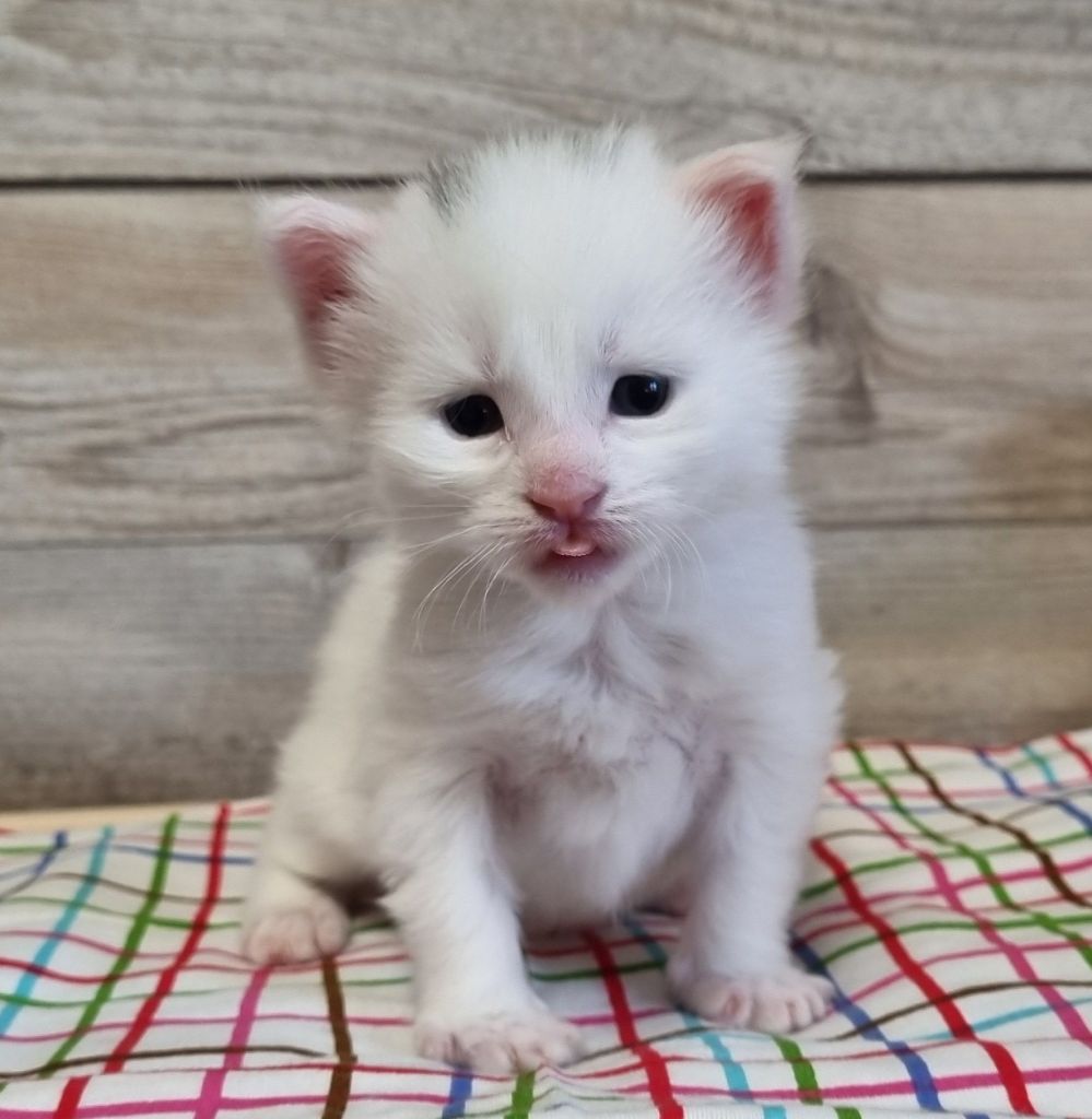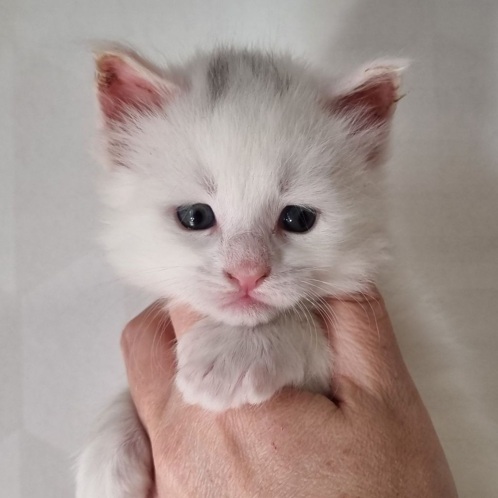 Vit med ”hörselfläckar” på huvudet, w62. Hane.