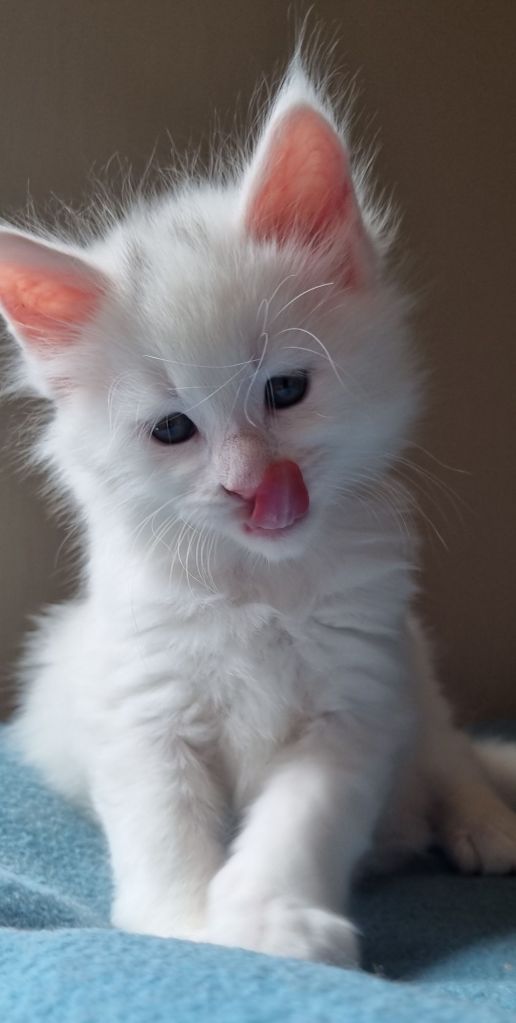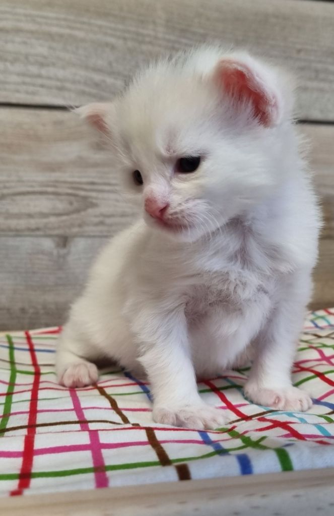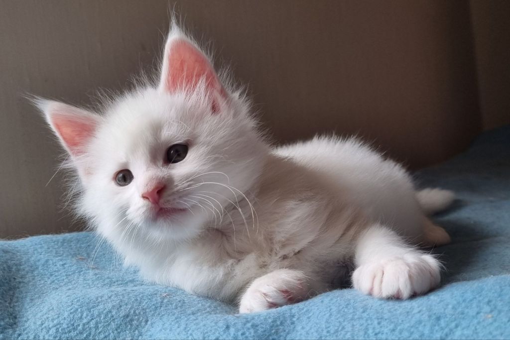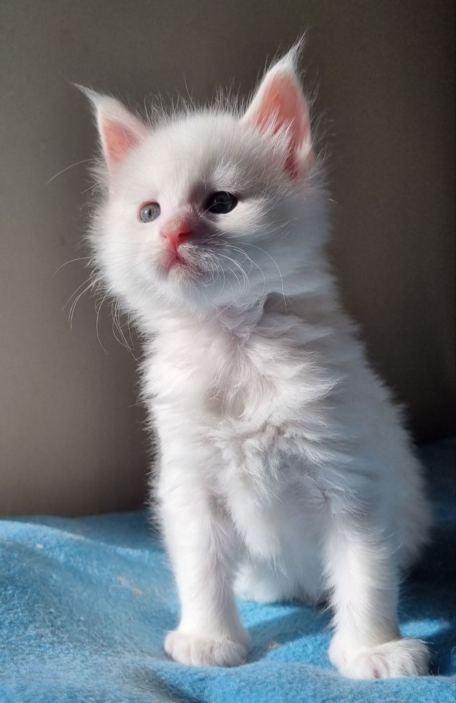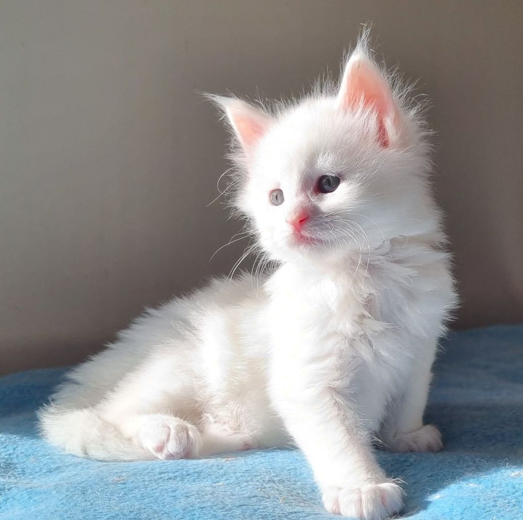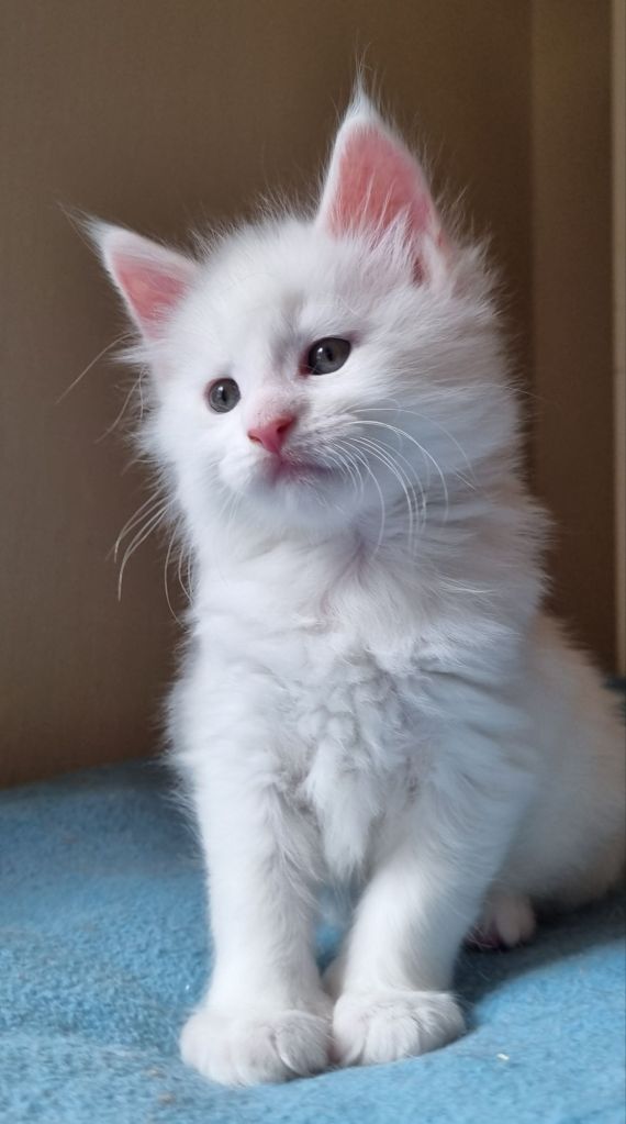 Vit med ”hörselfläckar” på huvudet, w62. Hane.